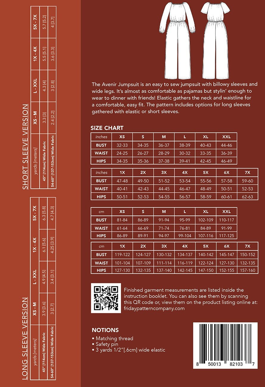 The Avenir Jumpsuit is an easy woven project that can be sewn up in an afternoon. With billowy sleeves and wide legs, this jumpsuit will have you breezing into any event looking good and feeling fine. Elastic gathers the neck and waistline for a comfortable, easy fit.
