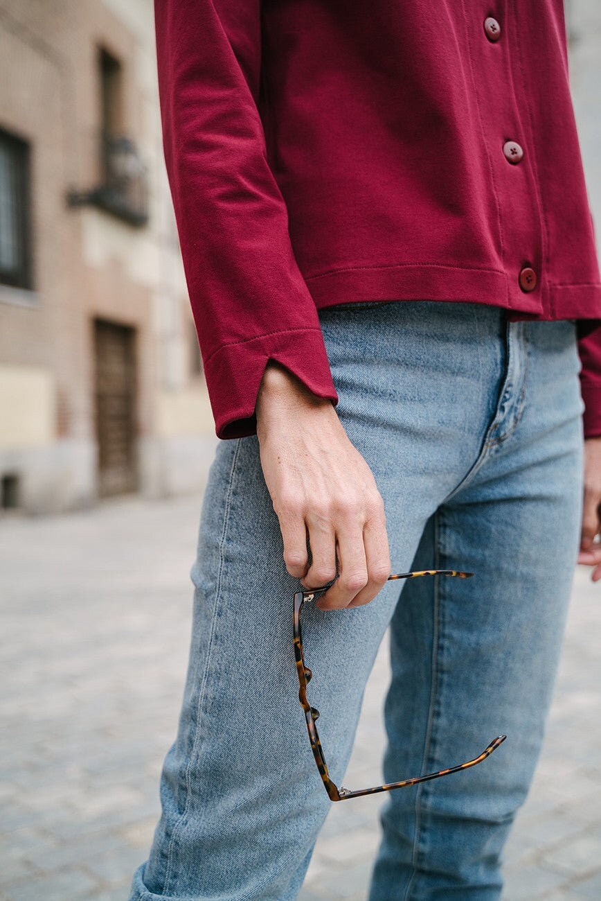 This versatile cardigan and vest pattern includes a V neck, classic styling, and clean lines. The facings give this design an especially professional appearance. View A includes a slightly cropped-length cardigan with long sleeves and buttons up the front. Views B and C are longer vest styles that are sleeveless and buttonless with walking vents at the sides. View B ends at the knee while View C is midi length. Mix and match the views to create other styles as well. This pattern includes cup sizes to help you get the perfect fit.