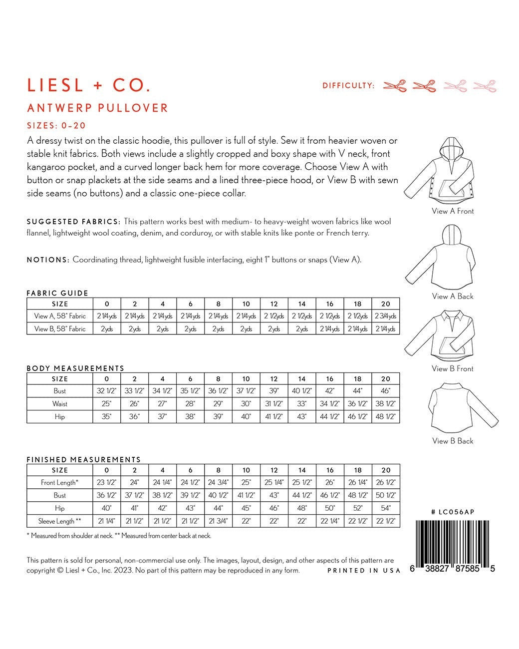 A dressy twist on the classic hoodie, this pullover is full of style. Sew it from heavier woven or stable knit fabrics. Both views include a slightly cropped and boxy shape with V neck, front kangaroo pocket, and a curved longer back hem for more coverage. Choose View A with button or snap plackets at the side seams and a lined three-piece hood, or View B with sewn side seams (no buttons) and a classic one-piece collar.