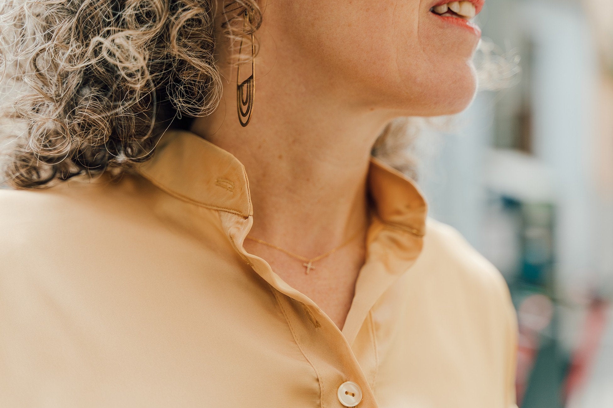 This effortless and sophisticated top and dress includes a band collar, popover button placket, and dolman sleeves. It’s cut loose with dropped shoulders and a box pleat at the center back. The top (View A) has cut-on dolman short sleeves, while the dress (View B) includes a self tie, curved shirttail hem, and long sleeves with classic cuffs. This is an all-season style that will be extremely versatile in your wardrobe.