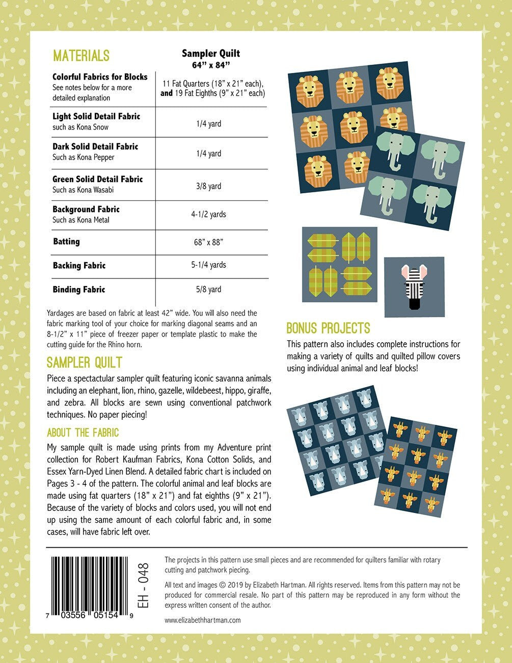 Spectacular Savanna - 64"x84" Animal Sampler Quilt Pattern with Bonus Projects by Elizabeth Hartman