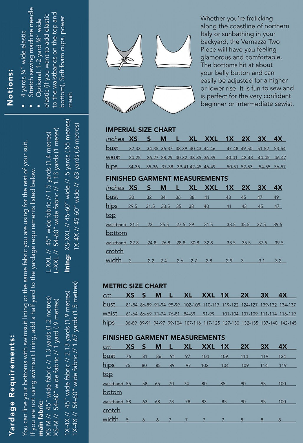 Whether you’re frolicking along the coastline of northern Italy or sunbathing in your backyard, the Vernazza Two Piece will have you feeling glamorous and comfortable. It features tank straps, an adjustable tie front, and a soft waistband. The bottoms hit at about your belly button and can easily be adjusted for a higher or lower rise. This is a simple swimsuit with a lot of style. It is fun to sew and is perfect for the very confident beginner or intermediate sewist.